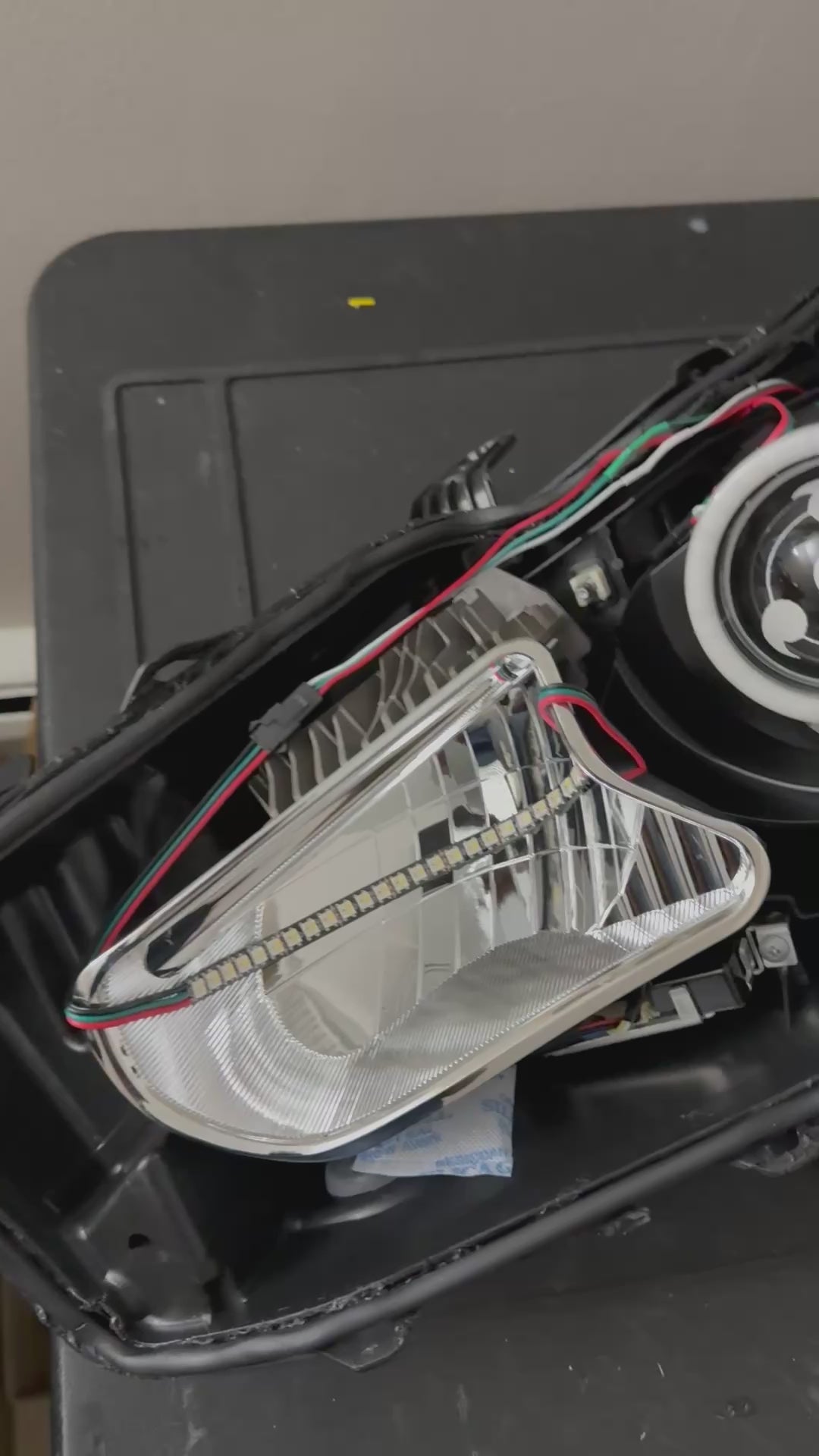 This acrylic sheet will have to be glued onto the actual headlight housing as seen in video.