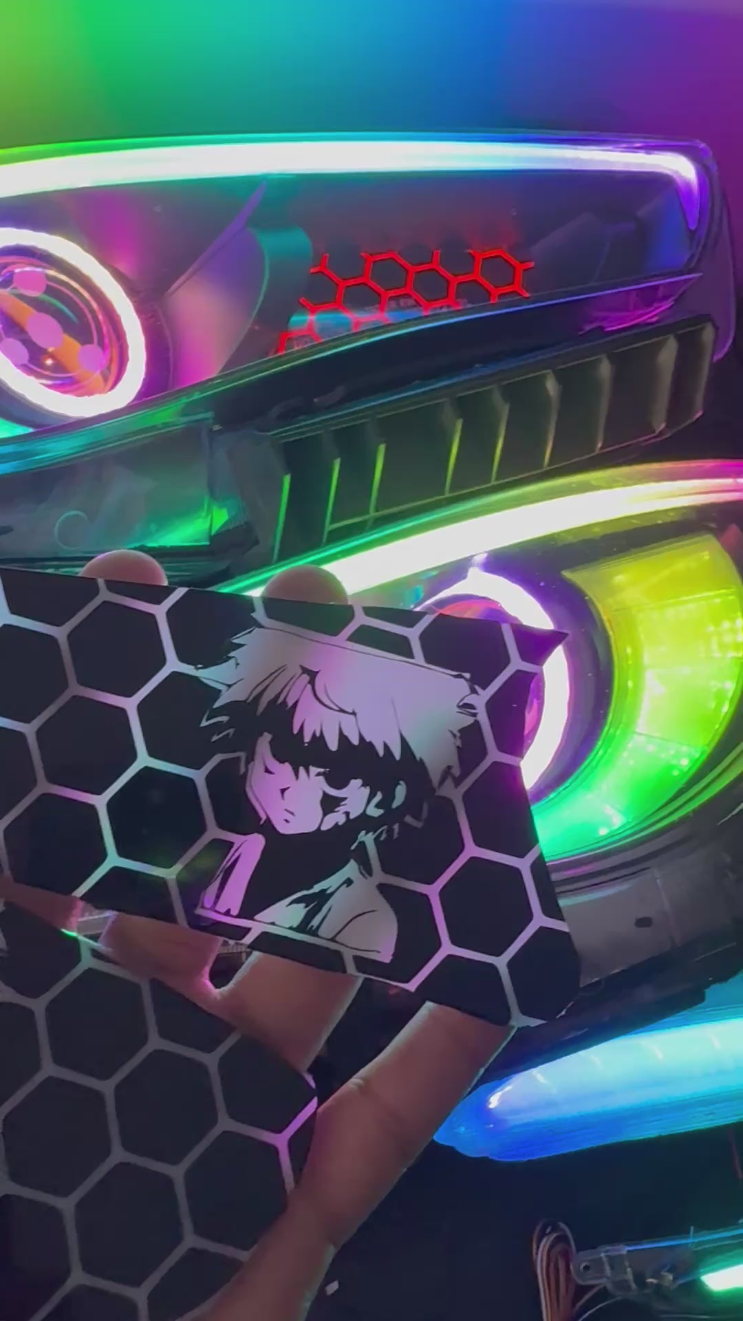 For those willing to do it them selves, and customize their headlights, add a high beam block off plate. Comes standard with a honeycomb design, but any design can be overlayed on top or done.