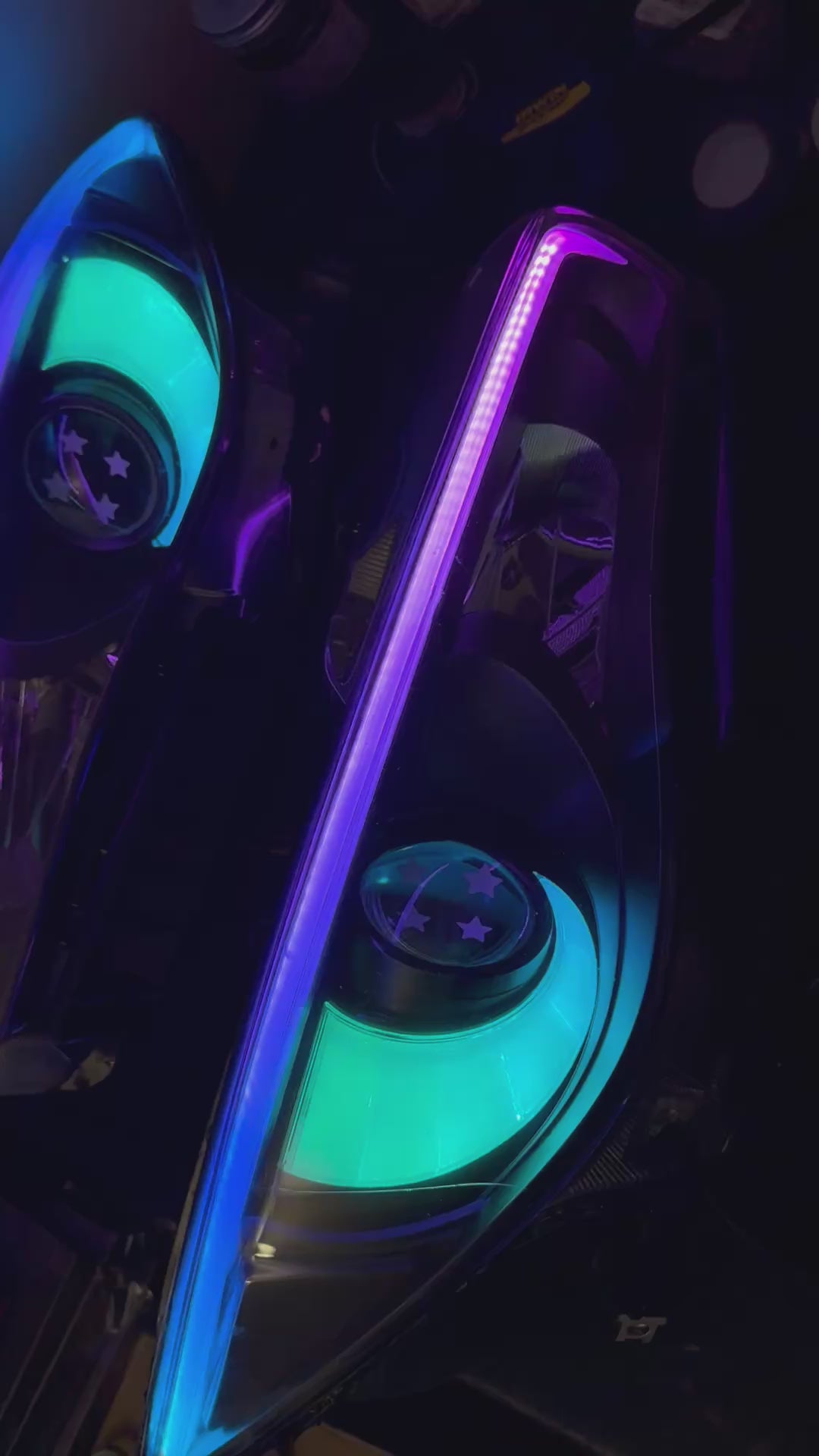 - WHATS INCLUDED: Blacked out housing , frosted white eyebrow and crescent, blacked out side markers, multiple start up animations, super bright RGB LEDs, multiple turn animation options to choose from, multiple show modes, each being fully customizable, ability to customize individual components, if added (example, if halos equipped, ability to have different colors on halos from headlights)